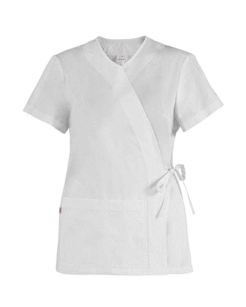 La casacca Ilaria è un vero capo evergreen: semplice, naturale e fresca, ideale per il settore wellness, ha uno stile molto femminile, sottolineato dalla chiusura ad incrocio con lacci da annodare in vita. Presenta maniche corte con spacchetti per facilitare i movimenti, un’ampia tasca sul davanti e spacchi sui fianchi.